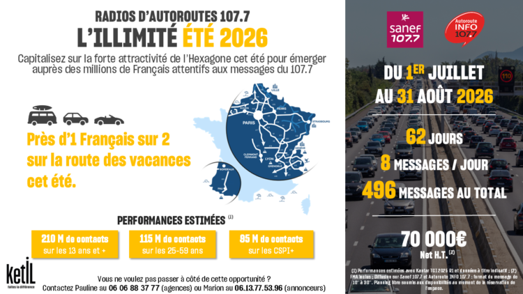 Cet été, les 3/4 des vacanciers choisirons la voiture pour leurs trajets de vacances(1), et 63% écouterons systématiquement le 107.7 pendant leurs trajets sur autoroute(2).
